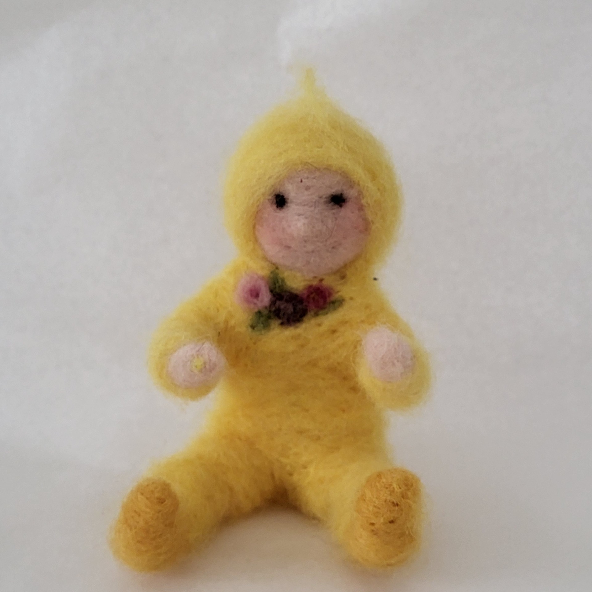 Uniikki, neulahuovutettu tipu suomalaisesta lampaanvillasta, jonka syliin voit laittaa pääsiäismunan. Korkeus 10 cm.