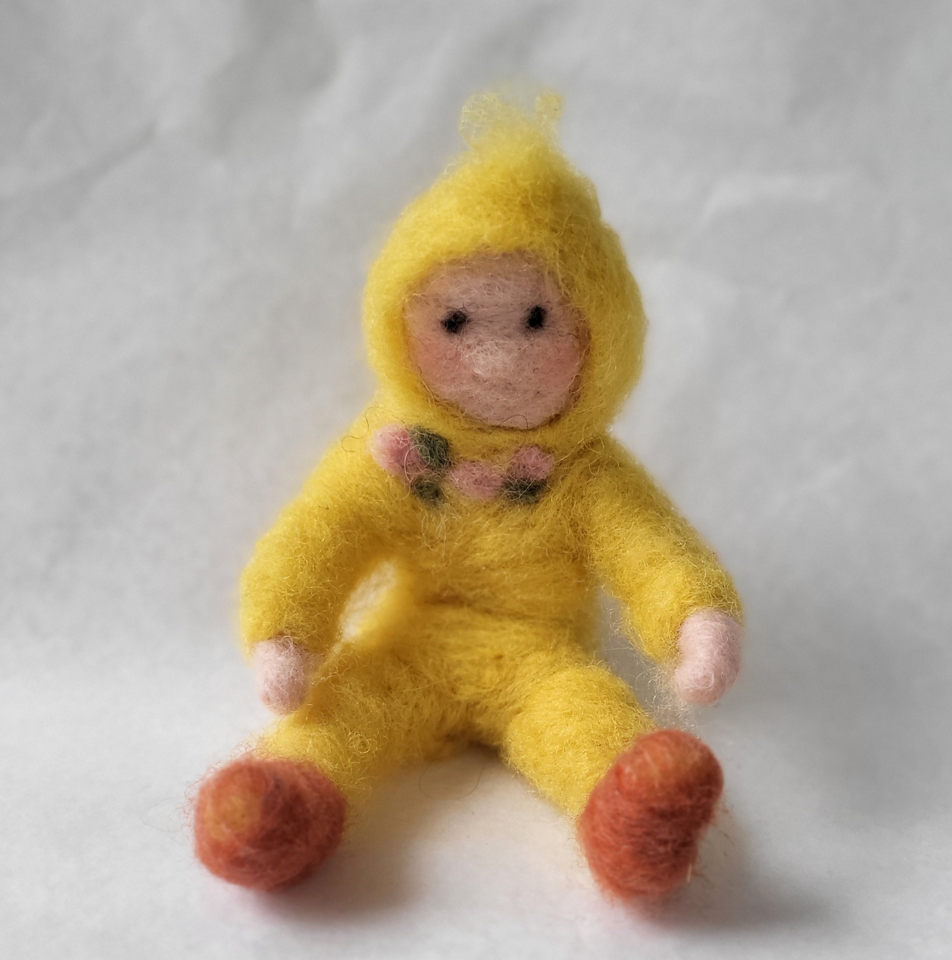 Uniikki, neulahuovutettu tipu suomalaisesta lampaanvillasta. Tipun syliin voit laittaa pääsiäismunan. Korkeus istuen n. 11 cm