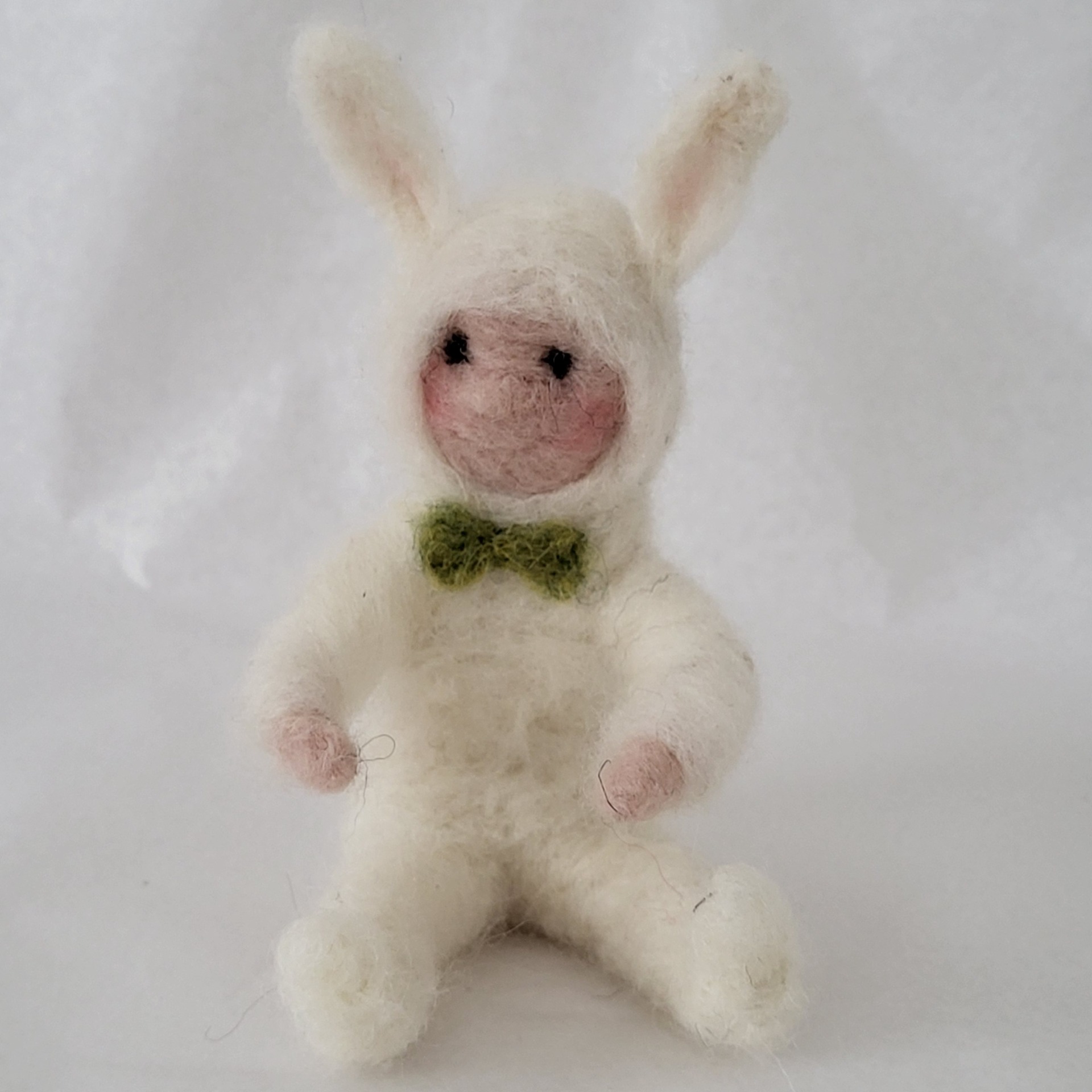 Uniikki, neulahuovutettu pääsiäispupu suomalaisesta lampaanvillasta, jonka syliin voit laittaa pääsiäismunan. Korkeus n. 12 cm.